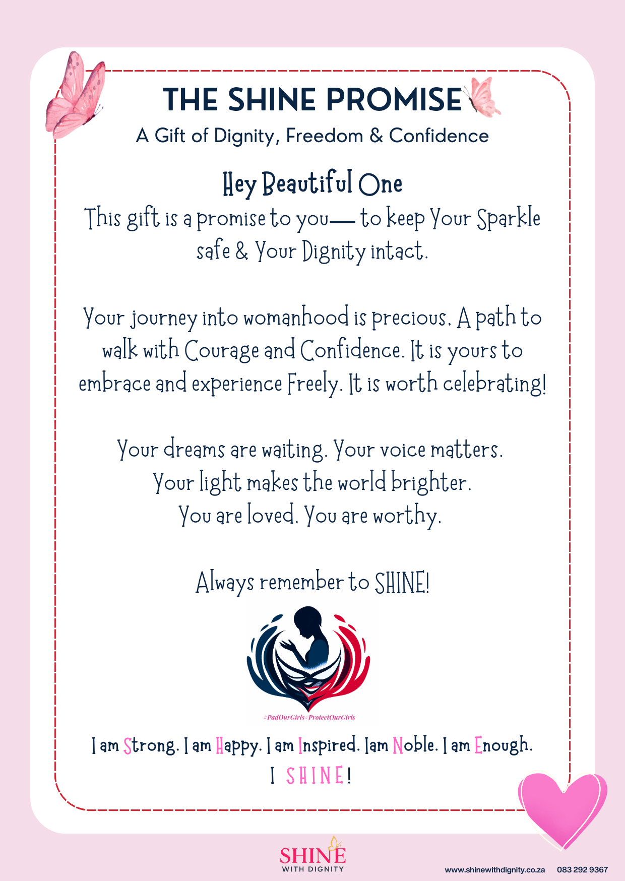 A beautifully printed inspirational poem carrying a heartfelt message designed to inspire confidence, dignity, and self-worth in every girl on her journey into womanhood.